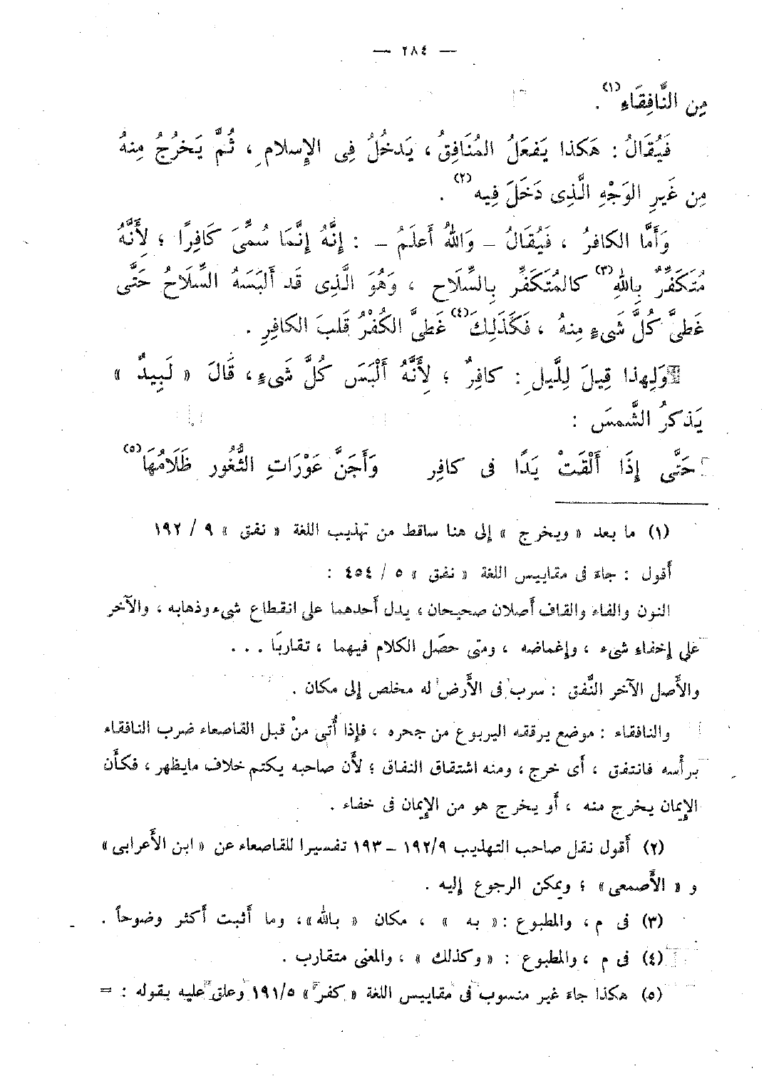 فيقال: هكذا يفعل المنافق، يدخل فى الإسلام، ثمّ يخرج منه من غير الوجه الذى دخل فيه.