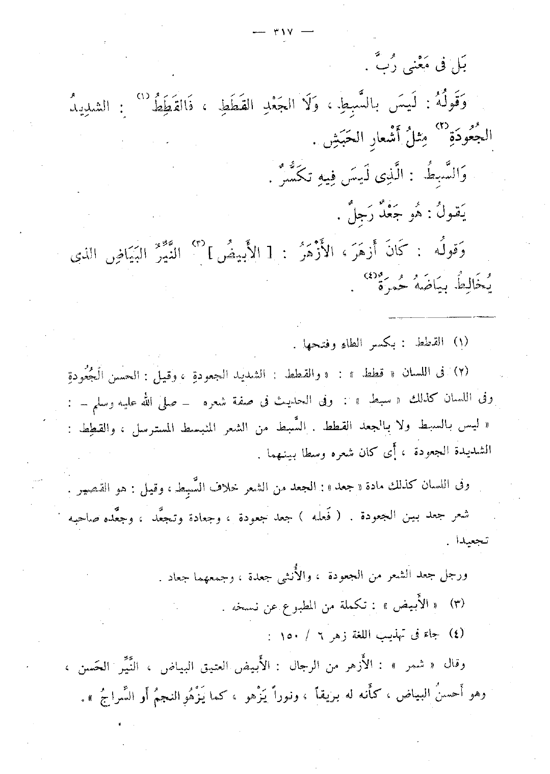 وقوله: ليس بالسّبط، ولا الجعد القطط، فالقطط: الشديد الجعودة مثل أشعار الحبش.