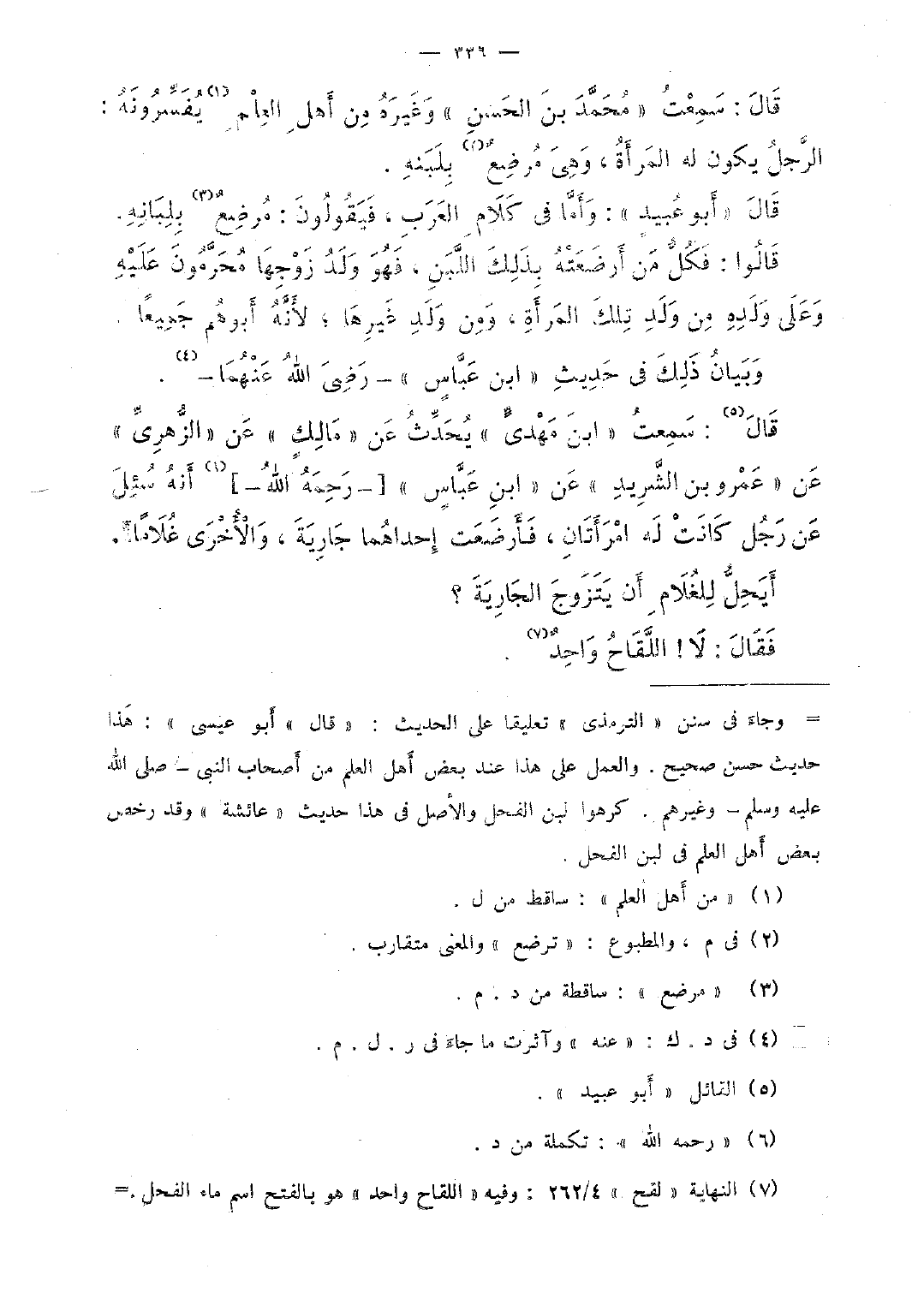 قال: سمعت "محمّد بن الحسن" وغيره من أهل العلم يفسّرونه: الرّجل يكون له المرأة، وهى مرضع بلبنه.