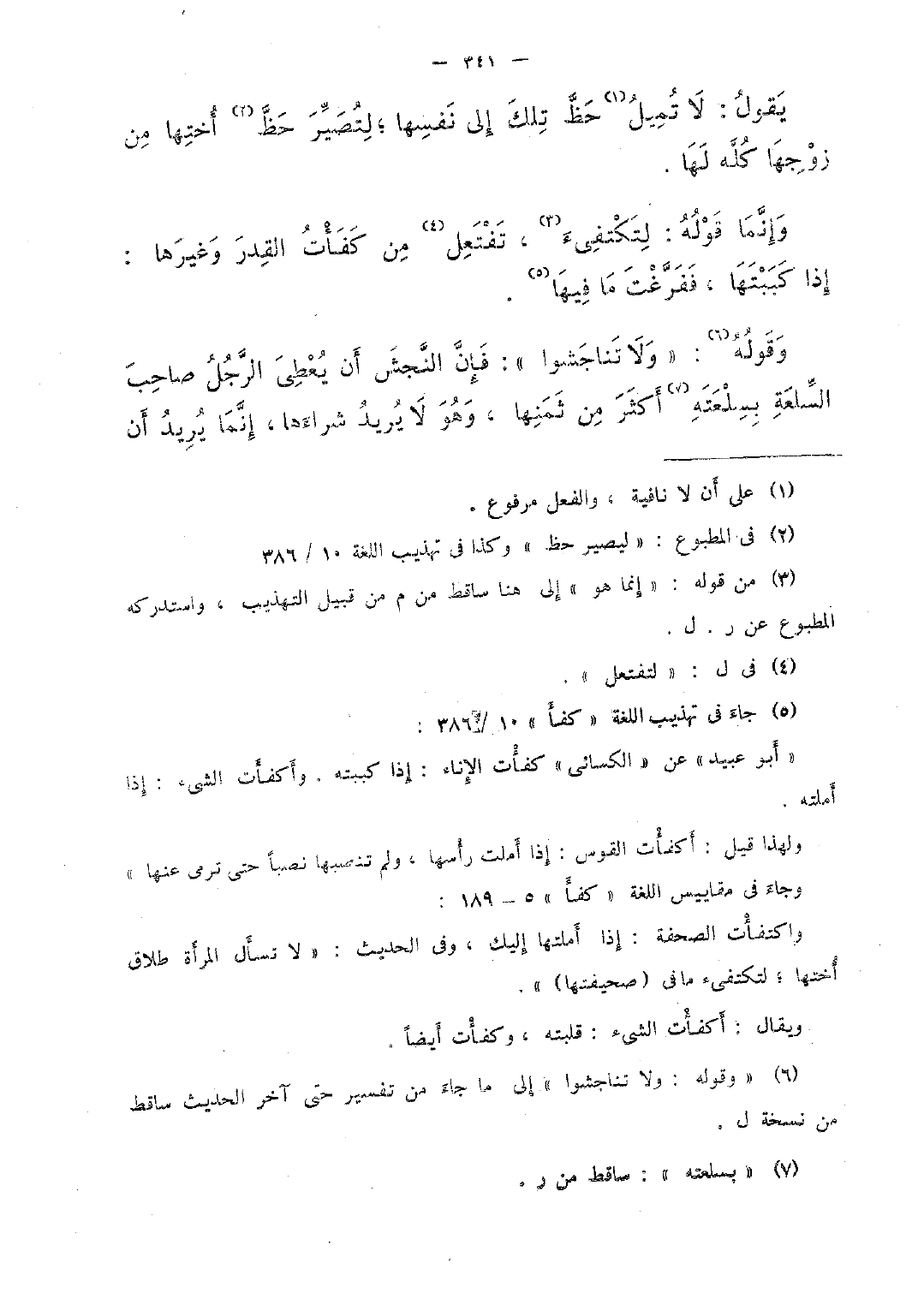 وإنّما قوله: لتكتفئ، تفتعل من كفأت القدر وغيرها: إذا كببتها، ففرّغت ما فيها.