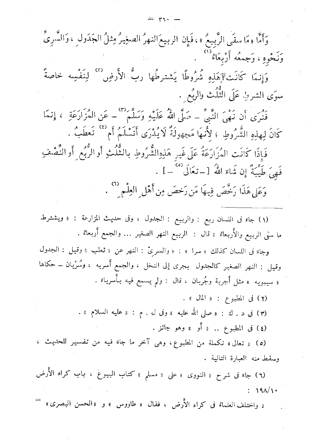 فنرى أن نهى النَّبىِّ -صلَّى الله عليه وسلَّم- عن المزارعة، إنما كان لهذه الشُّروط، لأنها مجهولة لا يدرى أتسلم أم تعطب.