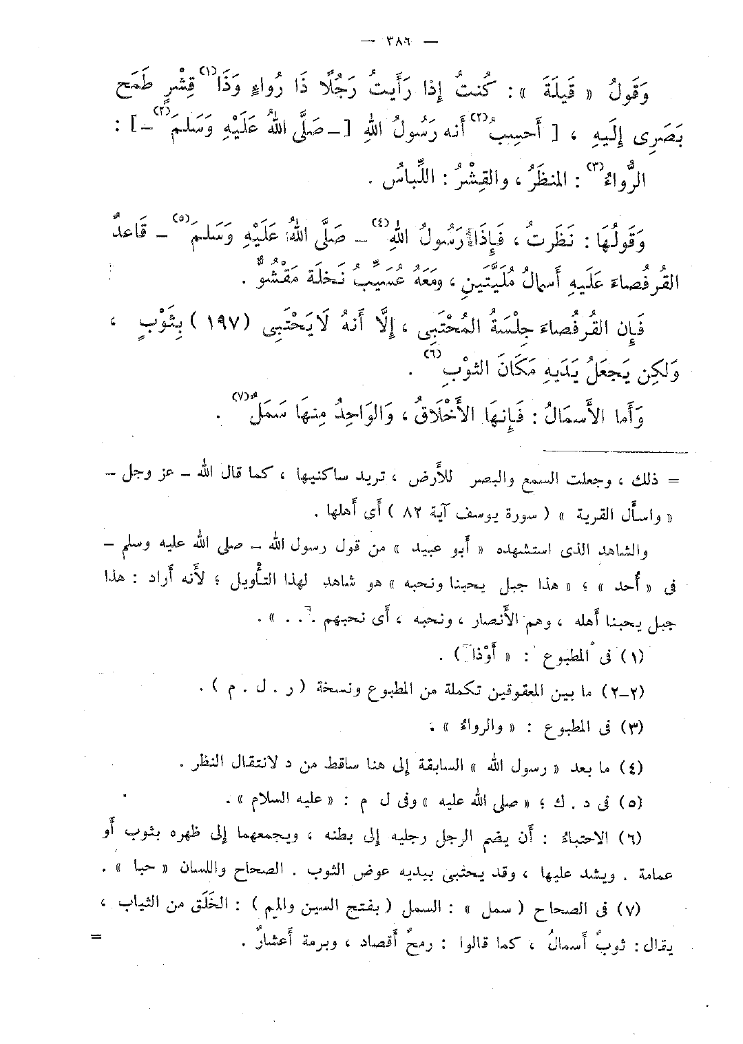 وقول "قيلة": كنت إذا رأيت رجلًا ذا رواء وذا قشر طمح بصرى إليه، [أحسب أنه رسول الله [-صلَّى الله عليه وسلم-]: