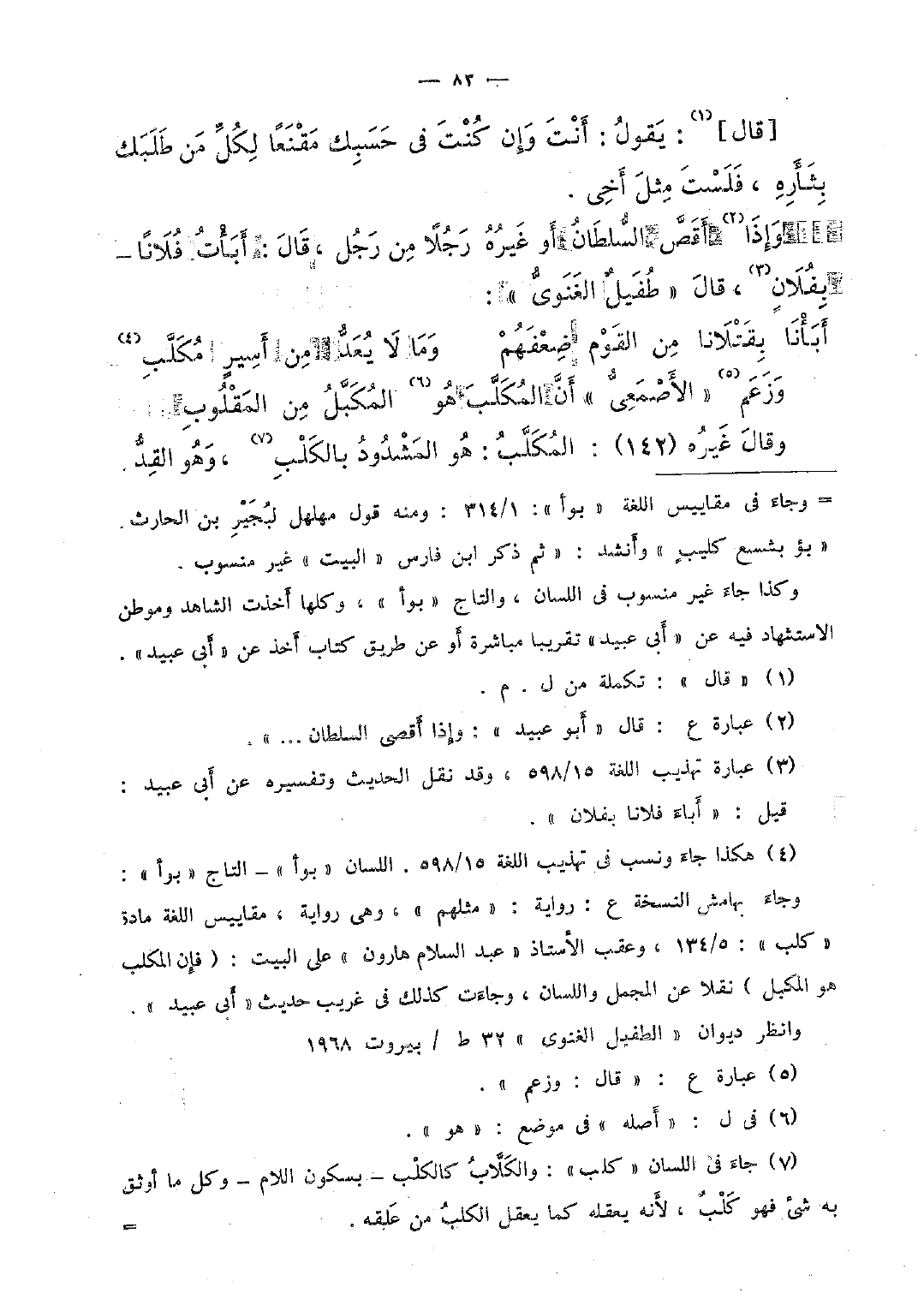 وإذا أقصَّ، السلطان أو غيره رجلًا من رجل، قال: أبأت فلانًا -بفلان، قال "طفيلٌ الغنوىُّ":