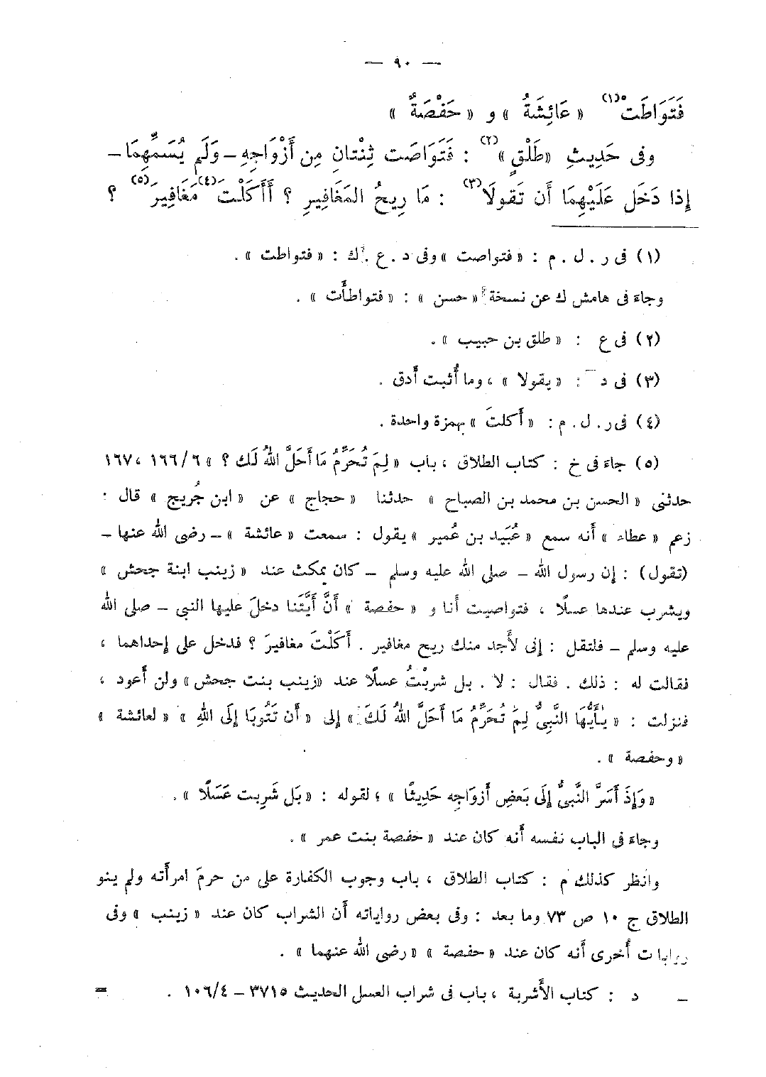 وفى حديث "طلقٍ": فتواصت ثنتان من أزواجه -ولم يسمِّهما- إذا دخل عليهما أن تقولا: ما ريح المغافير؟ أأكلت مغافير؟
