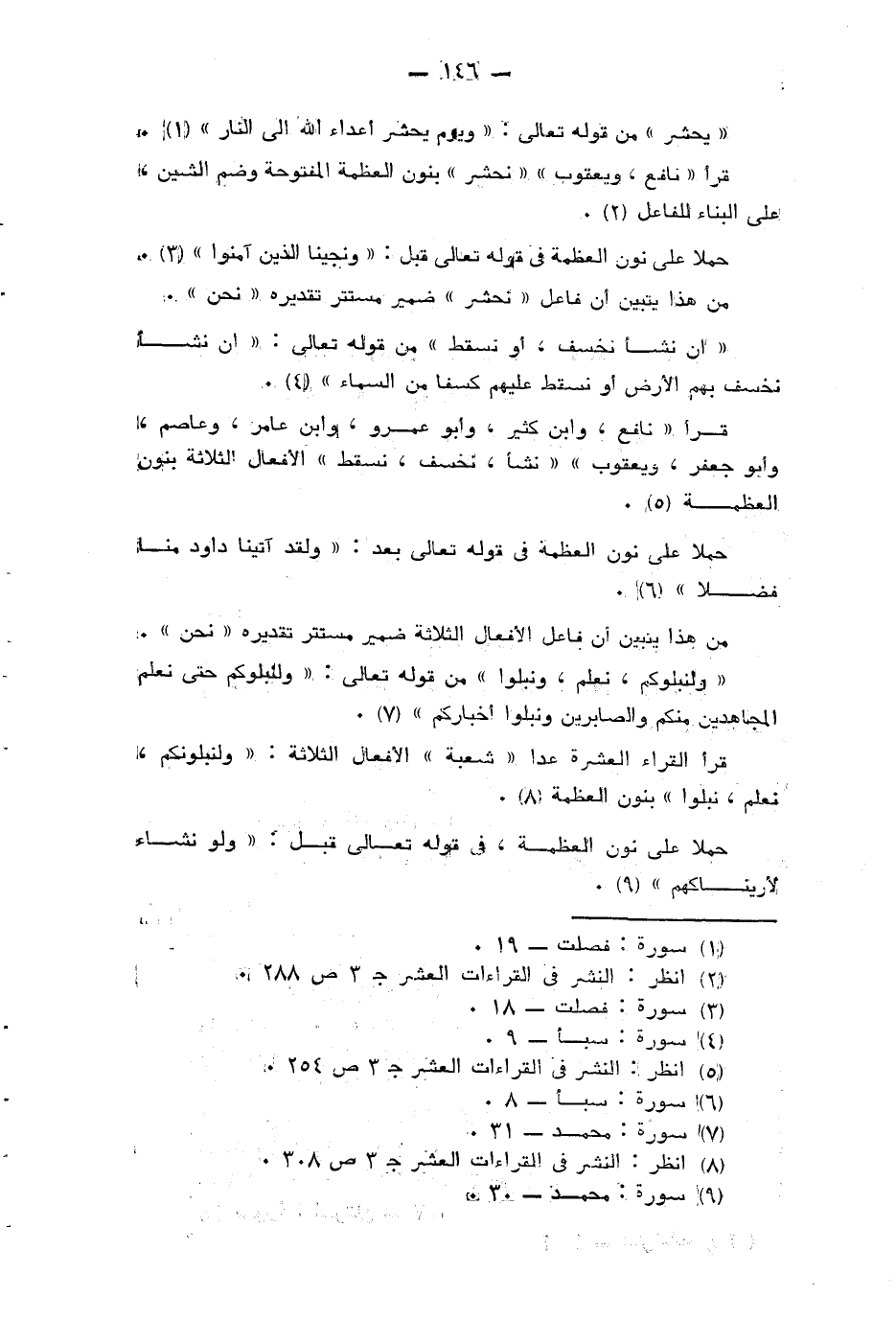 قرأ «نافع، وابن كثير، وأبو عمرو، وابن عامر، وعاصم، وأبو جعفر، ويعقوب» «نشأ، نخسف، نسقط» الأفعال الثلاثة بنون العظمة (¬5).