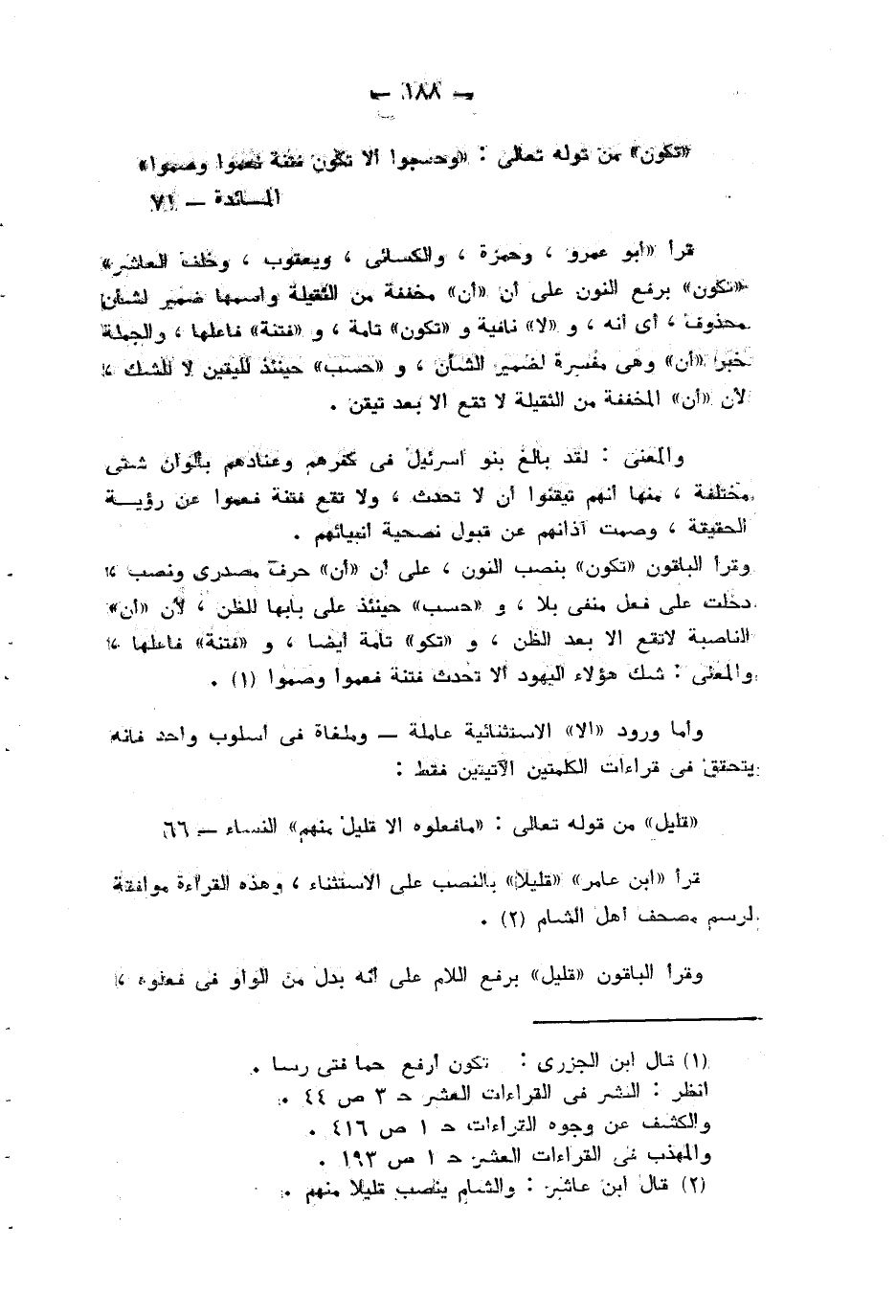 «تكون» من قوله تعالى: وَحَسِبُوا أَلَّا تَكُونَ فِتْنَةٌ فَعَمُوا وَصَمُّوا (¬1).