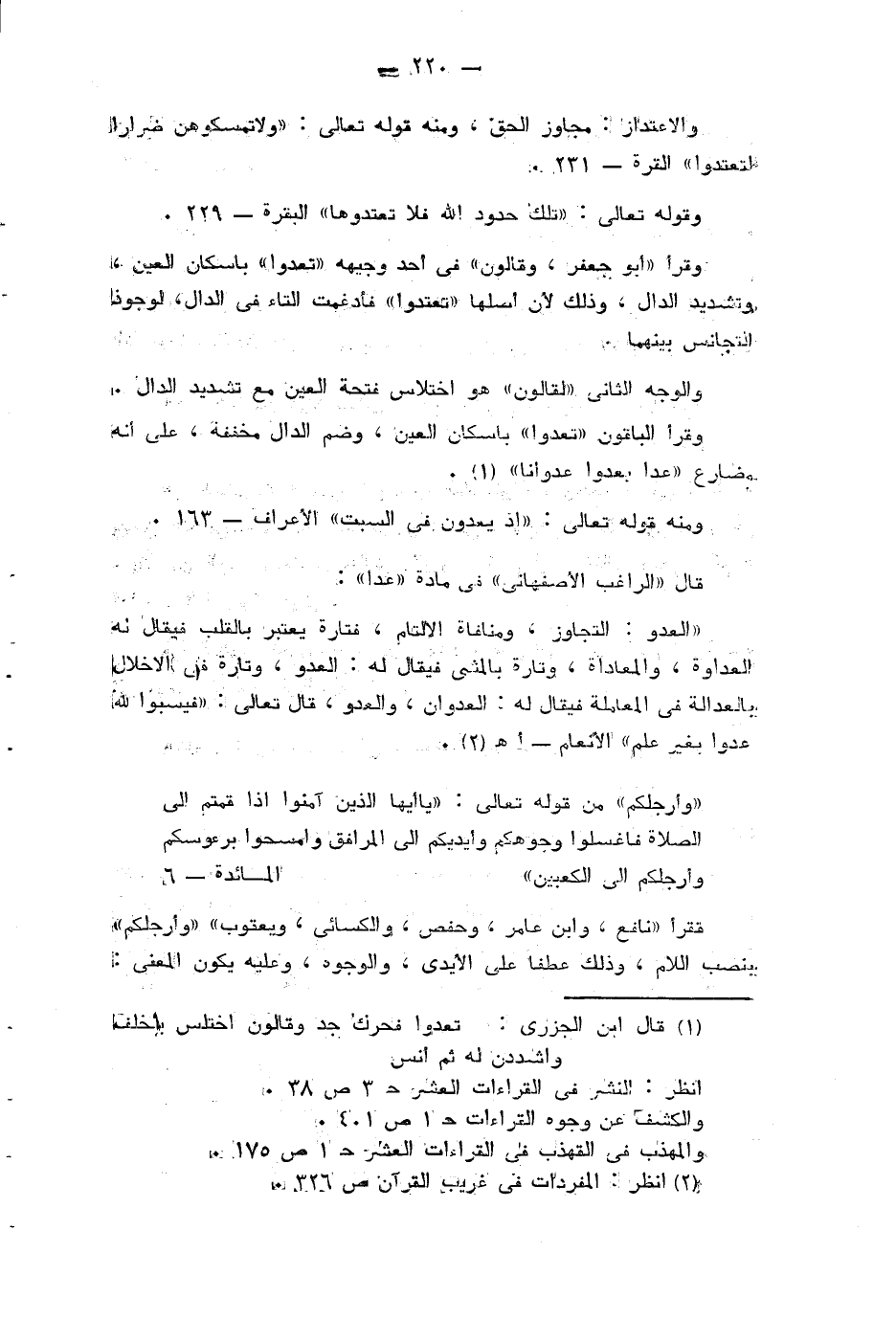 قال «الراغب الاصفهاني» في مادة «عدا»: