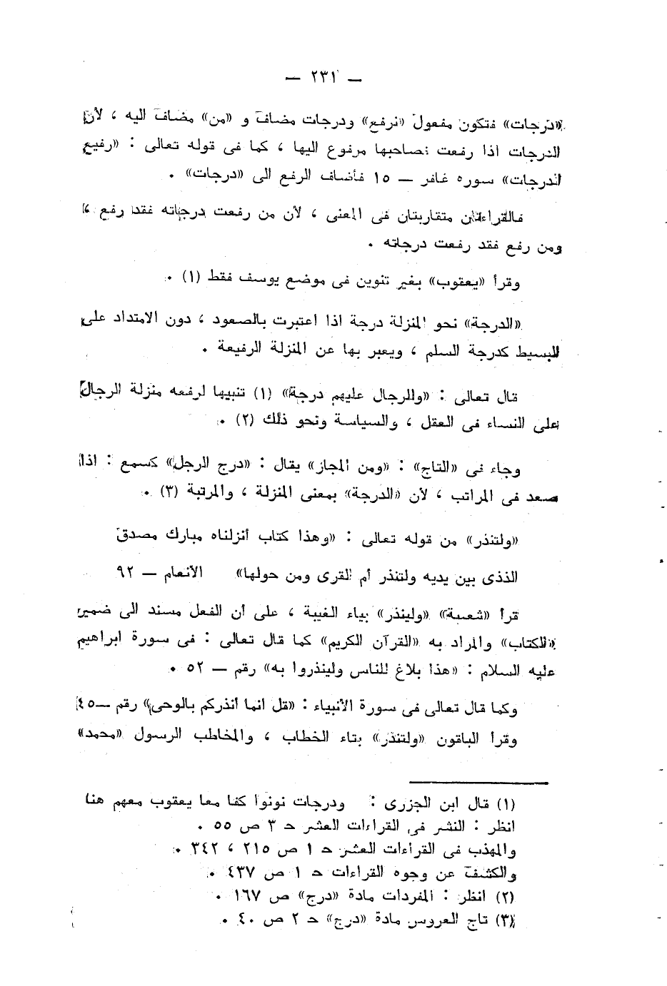 (¬1) قال ابن الجزري: ودرجات نونوا كفا معا يعقوب معهم هنا انظر: النشر في القراءات العشر ح 3 ص 55. والمهذب في القراءات العشر ح 1 ص 215، 342. والكشف عن وجوه القراءات ح 1 ص 437.