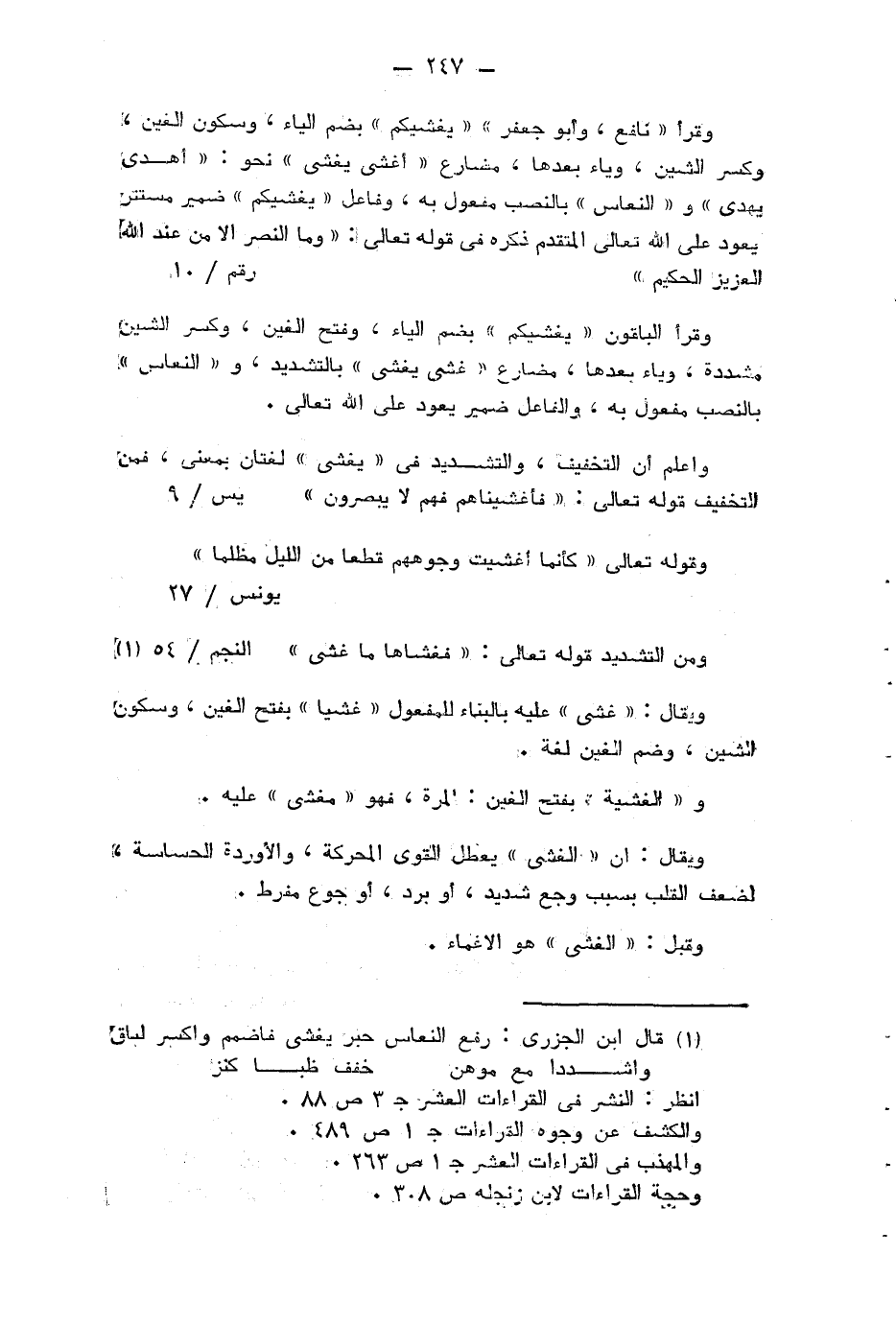 (¬4) قال ابن الجزري: رفع النعاس حبر يغشي فاضمم واكسر لباق