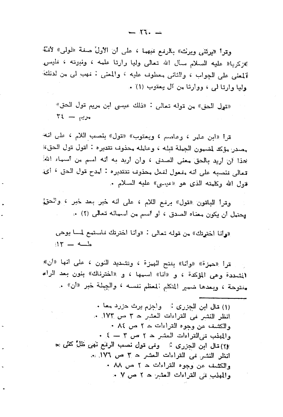 انظر: النشر في القراءات العشر ح 3 ص 173. والكشف عن وجوه القراءات ح 2 ص 84. والمهذب في القراءات العشر ح 2 ص 3 - 4.