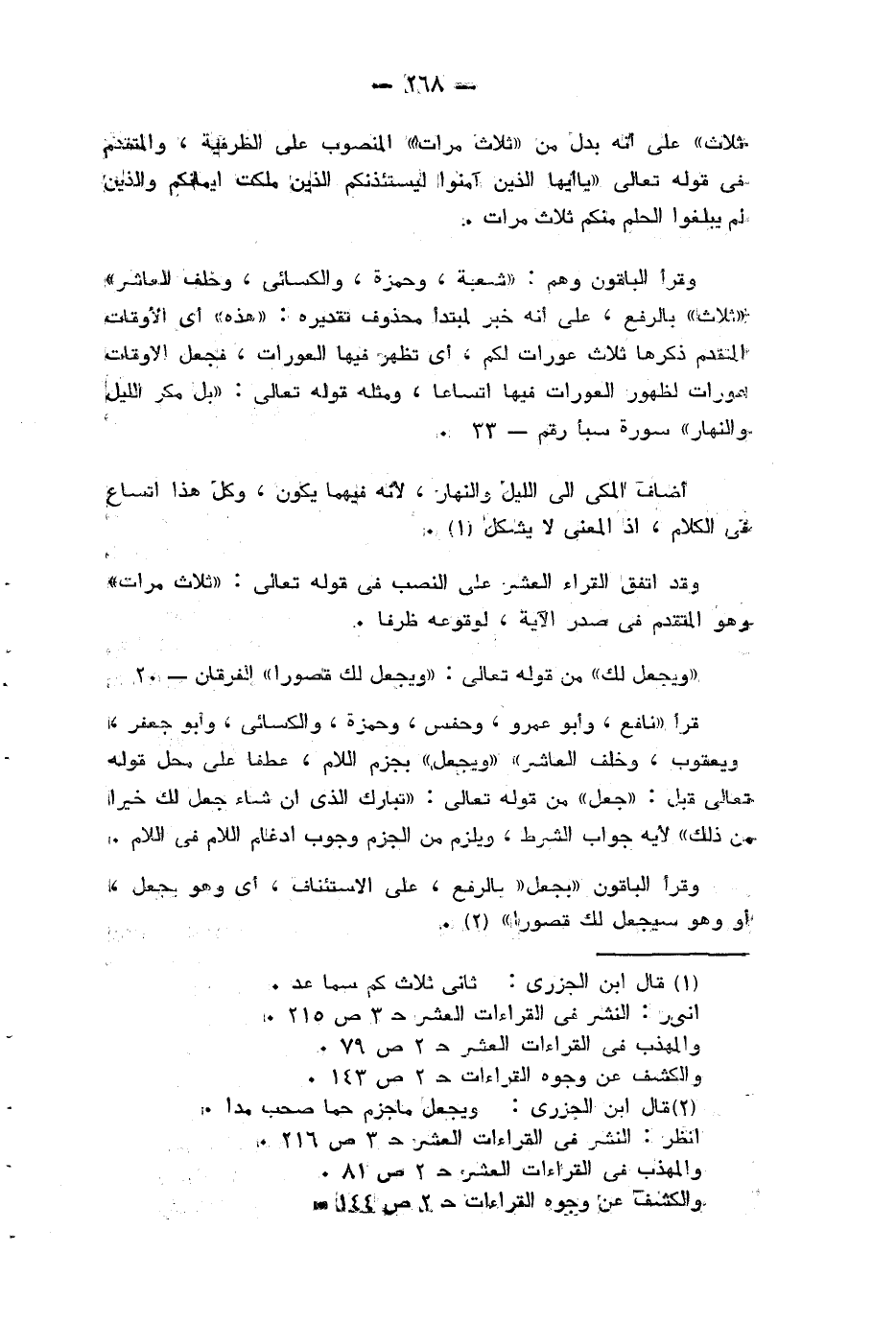 انظر: النشر في القراءات العشر ح 3 ص 215. والمهذب في القراءات العشر ح 2 ص 79. والكشف عن وجوه القراءات ح 2 ص 143.