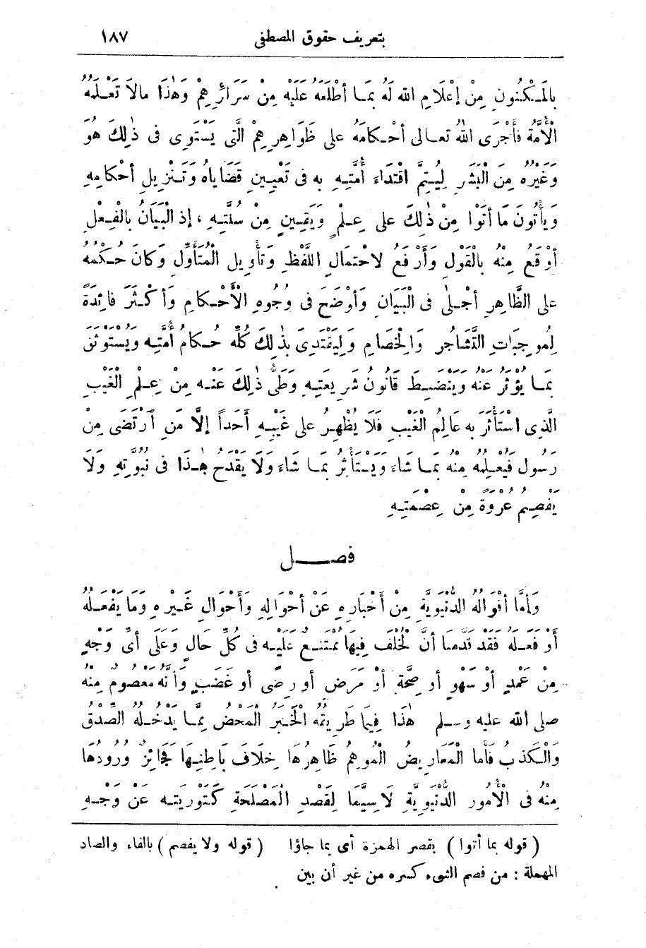 (قوله بما أتوا) بقصر الهمزة أي بما جاؤا (قوله ولا يفصم) بالفاء والصاد المهملة: من فصم الشئ كسره من غير أن بين (*)
