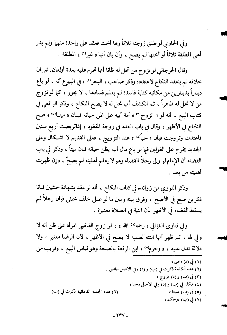 وَقَالَ الْجُرْجَانِيُّ لَوْ تَزَوَّجَ مَنْ تَحِلُّ لَهُ ظَانًّا أَنَّهَا تُحَرَّمُ عَلَيْهِ بِعِدَّةٍ أَوْ لِعَانٍ، ثُمَّ بَانَ خِلَافُهُ لَمْ يَنْعَقِدْ النِّكَاحُ لِاعْتِقَادِهِ وَذَكَرَ صَاحِبُ " الْبَحْرِ " فِي الْبُيُوعِ أَنَّهُ، لَوْ بَاعَ دِينَارًا بِدِينَارَيْنِ مِنْ مُكَاتَبِهِ كِتَابَةً فَاسِدَةً لَمْ يَعْلَمْ فَسَادَهَا، لَا يَجُوزُ، كَمَا لَوْ تَزَوَّجَ مَنْ لَا تَحِلُّ لَهُ ظَاهِرًا، ثُمَّ انْكَشَفَ أَنَّهَا تَحِلُّ لَهُ لَا يَصِحُّ النِّكَاحُ، وَذَكَرَ الرَّافِعِيُّ فِي كِتَابِ الْبَيْعِ، أَنَّهُ لَوْ " تَزَوَّجَ " أَمَةَ أَبِيهِ عَلَى ظَنِّ حَيَاتِهِ فَبَانَ " مَيِّتًا " صَحَّ النِّكَاحُ فِي الْأَظْهَرِ، وَقَالَ فِي بَابِ الْعَدَدِ فِي زَوْجَةِ الْمَفْقُودِ، إذَا تَرَبَّصَتْ أَرْبَعَ سِنِينَ فَاعْتَدَّتْ وَتَزَوَّجَتْ فَبَانَ " حَيًّا " عِنْدَ التَّزْوِيجِ، فَعَلَى الْقَدِيمِ لَا إشْكَالَ وَعَلَى الْجَدِيدِ يَخْرُجُ عَلَى الْقَوْلَيْنِ فِيمَا لَوْ بَاعَ مَالَ أَبِيهِ يَظُنُّ حَيَاتَهُ فَبَانَ مَيِّتًا، وَذَكَرَ فِي بَابِ الْقَضَاءِ أَنَّ الْإِمَامَ لَوْ وَلَّى رَجُلًا الْقَضَاءَ وَهُوَ لَا يَعْلَمُ أَهْلِيَّتَهُ لَمْ يَصِحَّ، وَإِنْ ظَهَرَتْ أَهْلِيَّتُهُ مِنْ بَعْدُ.