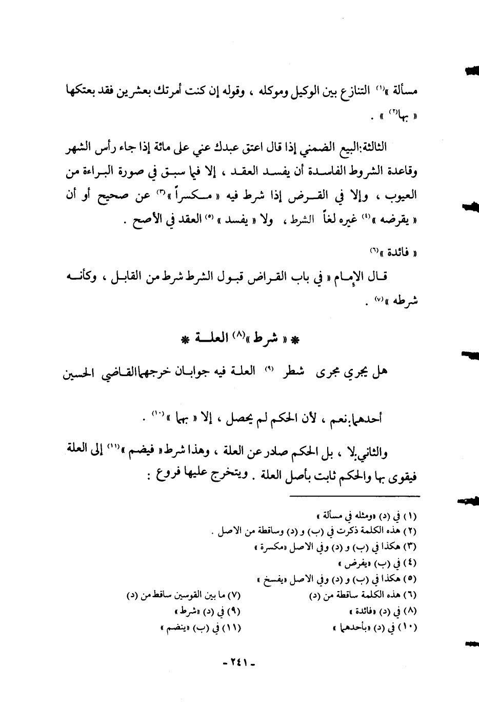 " شَرْطُ الْعِلَّةِ هَلْ يَجْرِي مَجْرَى شَطْرِ الْعِلَّةِ فِيهِ جَوَابَانِ خَرَّجَهُمَا الْقَاضِي الْحُسَيْنُ