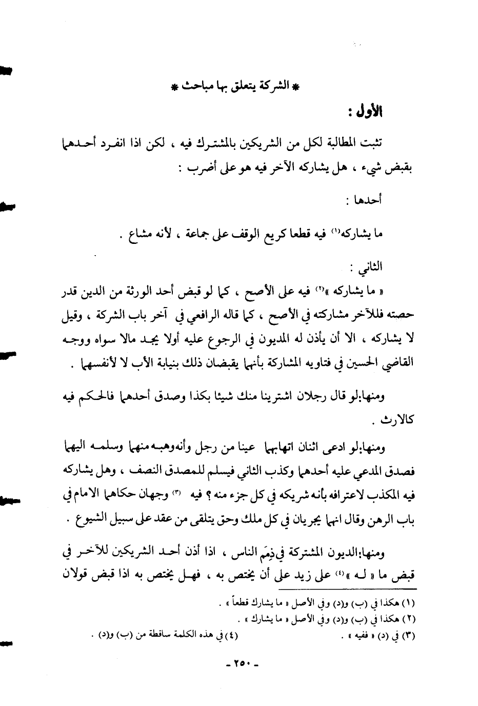 [الشَّرِكَةُ يَتَعَلَّقُ بِهَا مَبَاحِثُ]