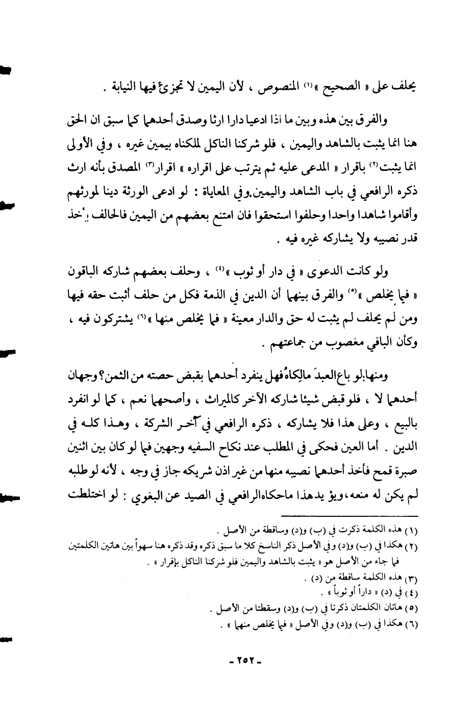 وَفِي الْمُعَايَاةِ: لَوْ ادَّعَى الْوَرَثَةُ دَيْنًا لِمُوَرِّثِهِمْ وَأَقَامُوا شَاهِدًا وَاحِدًا وَحَلَفُوا اسْتَحَقُّوا فَإِنْ امْتَنَعَ بَعْضُهُمْ مِنْ الْيَمِينِ فَالْحَالِفُ يَأْخُذُ قَدْرَ نَصِيبِهِ وَلَا يُشَارِكُهُ غَيْرُهُ فِيهِ. وَلَوْ كَانَتْ الدَّعْوَى " فِي دَارٍ أَوْ ثَوْبٍ "، وَحَلَفَ بَعْضُهُمْ شَارَكَهُ الْبَاقُونَ " فِيمَا يَخْلُصُ " وَالْفَرْقُ بَيْنَهُمَا أَنَّ الدَّيْنَ فِي الذِّمَّةِ فَكُلُّ مَنْ حَلَفَ أَثْبَتَ حَقَّهُ فِيهَا، وَمَنْ لَمْ يَحْلِفْ لَمْ يَثْبُتْ لَهُ حَقٌّ وَالدَّارُ مُعَيَّنَةٌ " فَمَا يَخْلُصُ مِنْهَا " يَشْتَرِكُونَ فِيهِ، وَكَأَنَّ الْبَاقِيَ مَغْصُوبٌ مِنْ جَمَاعَتِهِمْ.