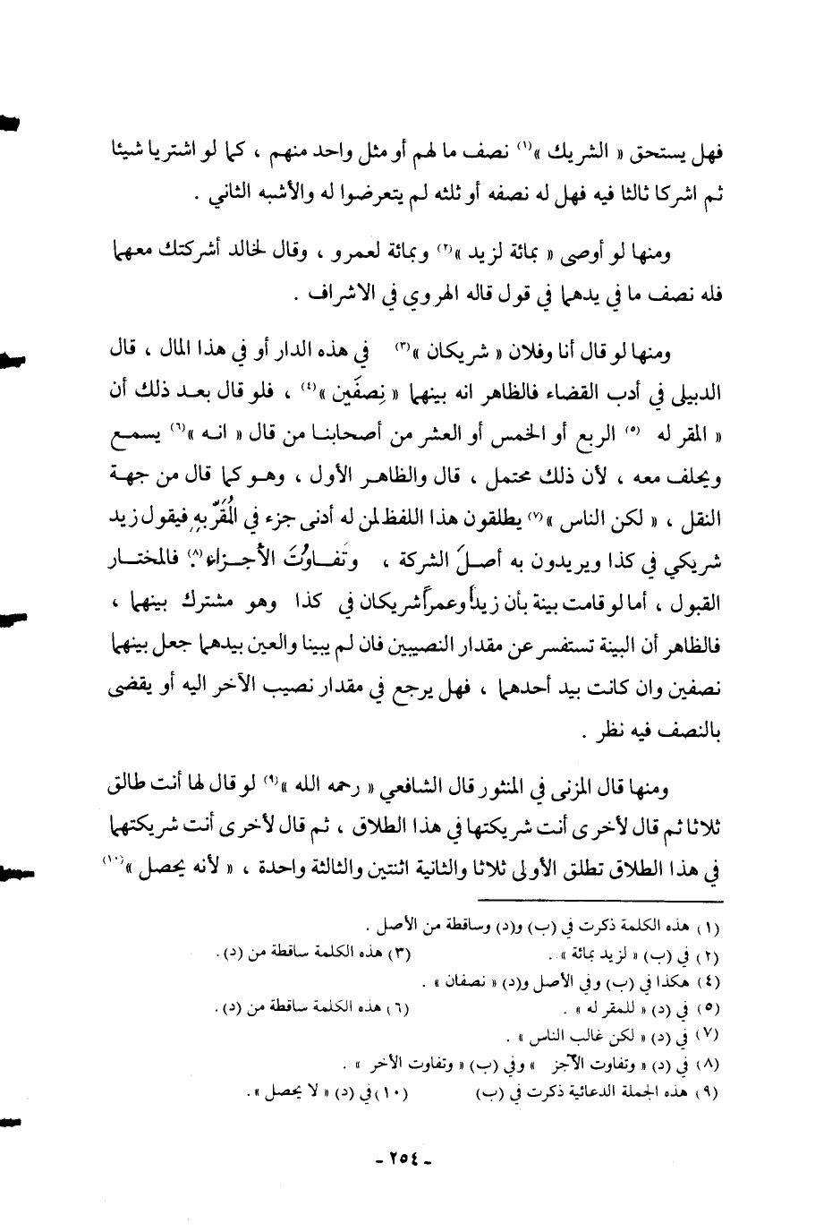 فَهَلْ يَسْتَحِقُّ " الشَّرِيكُ " نِصْفَ مَا لَهُمْ أَوْ مِثْلَ وَاحِدٍ مِنْهُمْ، كَمَا لَوْ اشْتَرَيَا شَيْئًا ثُمَّ أَشْرَكَا ثَالِثًا فِيهِ فَهَلْ لَهُ نِصْفُهُ أَوْ ثُلُثُهُ لَمْ يَتَعَرَّضُوا لَهُ وَالْأَشْبَهُ الثَّانِي.
