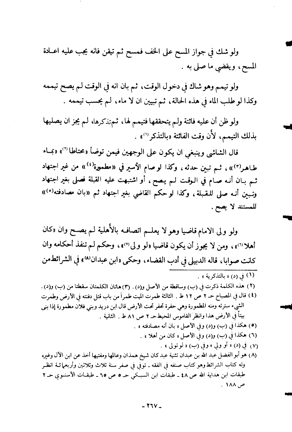 قَالَ الشَّاشِيُّ وَيَنْبَغِي أَنْ يَكُونَ عَلَى الْوَجْهَيْنِ فِيمَنْ تَوَضَّأَ " مُحْتَاطًا " " بِمَاءٍ طَاهِرٍ "، ثُمَّ تَبَيَّنَ حَدَثَهُ، وَكَذَا لَوْ صَامَ الْأَسِيرُ فِي " مَطْمُورَةٍ " مِنْ غَيْرِ اجْتِهَادٍ ثُمَّ بَانَ أَنَّهُ صَامَ فِي الْوَقْتِ لَمْ يَصِحَّ، أَوْ اشْتَبَهَتْ عَلَيْهِ الْقِبْلَةُ فَصَلَّى بِغَيْرِ اجْتِهَادٍ وَتَبَيَّنَ أَنَّهُ صَلَّى لِلْقِبْلَةِ، وَكَذَا لَوْ حَكَمَ الْقَاضِي بِغَيْرِ اجْتِهَادٍ ثُمَّ " بَانَ مُصَادَفَتُهُ " لِلْمُسْتَنَدِ لَا يَصِحُّ.