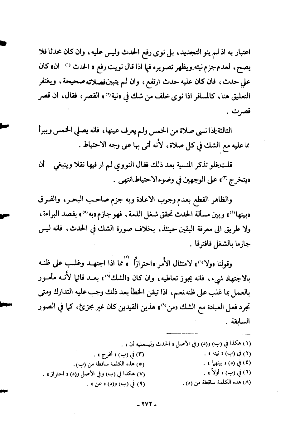 نَعَمْ، إذَا تَيَقَّنَ الْخَطَأَ بَعْدَ ذَلِكَ وَجَبَ عَلَيْهِ التَّدَارُكُ وَمَتَى تَجَرَّدَ فِعْلُ الْعِبَادَةِ مَعَ الشَّكِّ " مِنْ " هَذَيْنِ الْقَيْدَيْنِ كَانَ غَيْرَ مُجْزِئٍ، كَمَا فِي الصُّوَرِ السَّابِقَةِ.