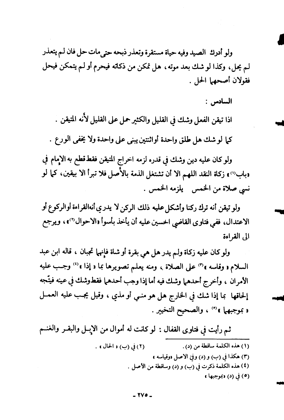 ثُمَّ رَأَيْت فِي فَتَاوَى الْقَفَّالِ: لَوْ كَانَتْ لَهُ أَمْوَالٌ مِنْ الْإِبِلِ وَالْبَقَرِ وَالْغَنَمِ