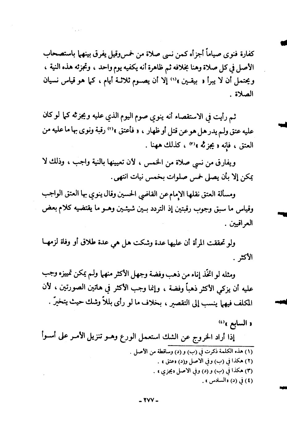وَمَسْأَلَةُ الْعِتْقِ نَقَلَهَا الْإِمَامُ عَنْ الْقَاضِي الْحُسَيْنِ وَقَالَ يَنْوِي بِهَا الْعِتْقَ الْوَاجِبَ وَقِيَاسُ مَا سَبَقَ وُجُوبُ رَقَبَتَيْنِ إذْ التَّرَدُّدُ بَيْنَ شَيْئَيْنِ وَهُوَ مَا يَقْتَضِيهِ كَلَامُ بَعْضِ الْعِرَاقِيِّينَ.