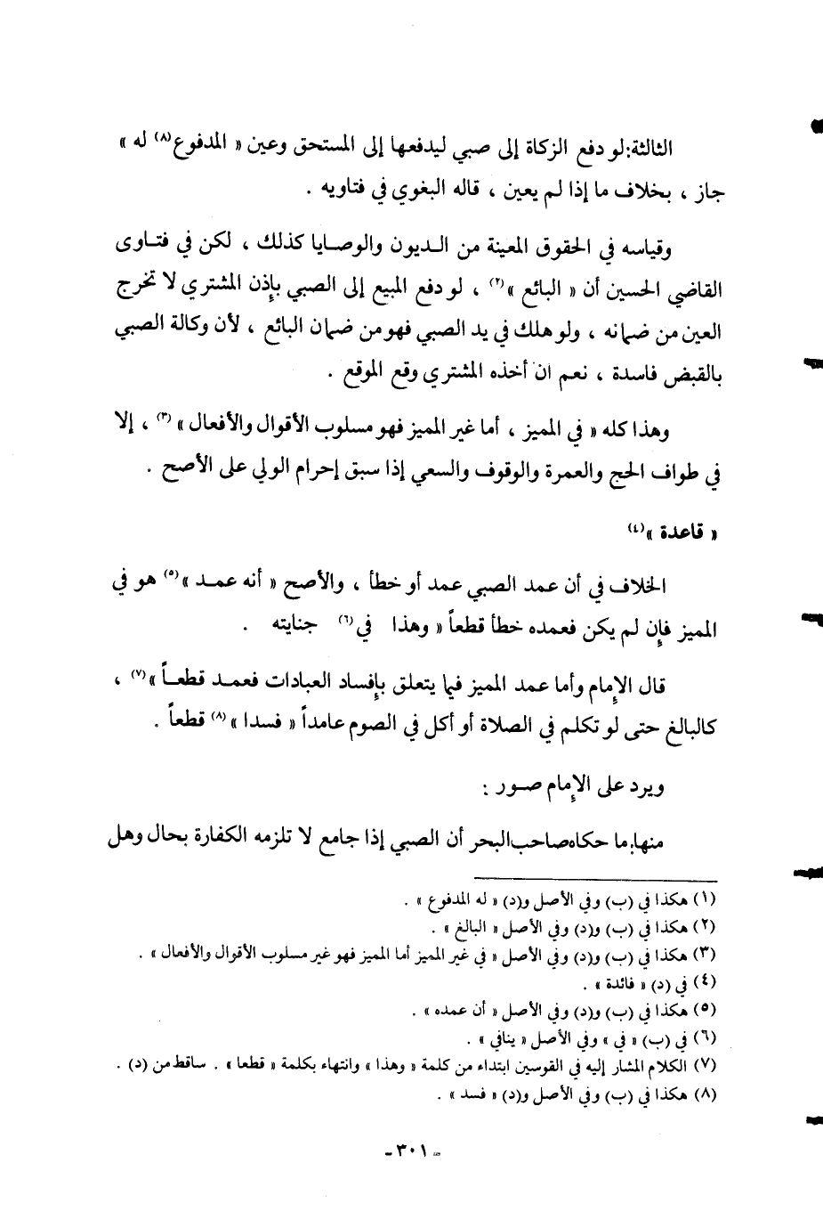قَالَ الْإِمَامُ وَأَمَّا عَمْدُ الْمُمَيَّزِ فِيمَا يَتَعَلَّقُ بِإِفْسَادِ الْعِبَادَاتِ فَعَمْدٌ قَطْعًا "، كَالْبَالِغِ حَتَّى لَوْ تَكَلَّمَ فِي الصَّلَاةِ أَوْ أَكَلَ فِي الصَّوْمِ عَامِدًا " فَسَدَا " قَطْعًا.
