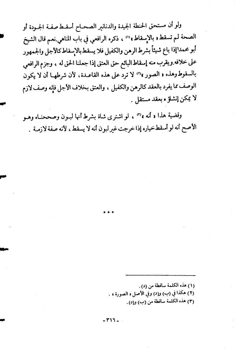 نَعَمْ قَالَ الشَّيْخُ أَبُو مُحَمَّدٍ إذَا بَاعَ شَيْئًا بِشَرْطِ الرَّهْنِ وَالْكَفِيلِ فَلَا يَسْقُطُ بِالْإِسْقَاطِ كَالْأَجَلِ، وَالْجُمْهُورُ عَلَى خِلَافِهِ.