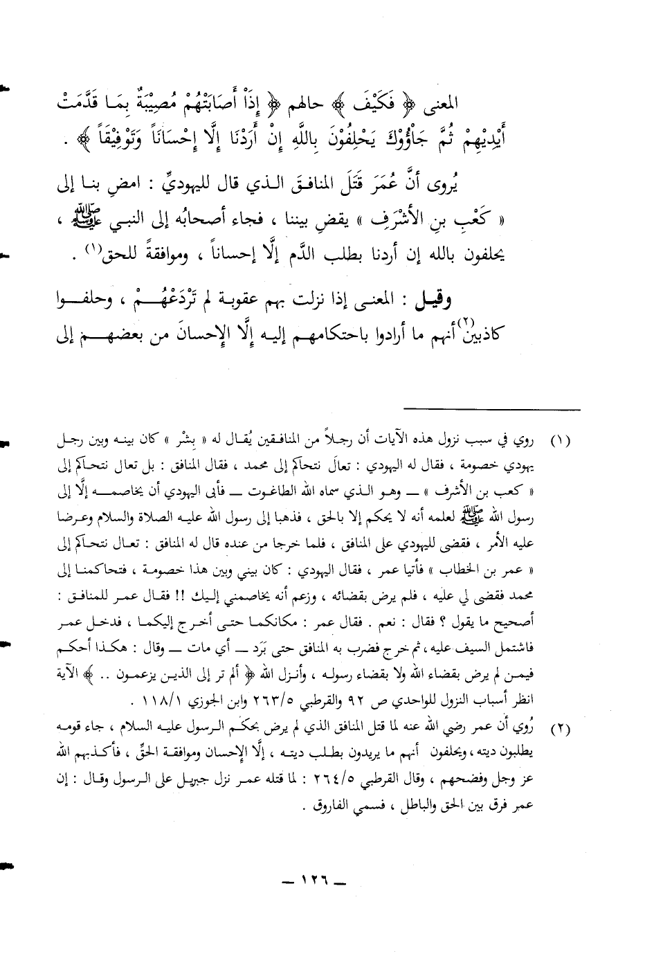 المعنى (فكيف) حالهم (إذا أصابتهم مصيبة بما قدمت أيديهم ثم جاؤوك يحلفون بالله ان أردنا الا احسانا وتوفيقا) يروى أن عمر قتل المنافق الذي قال لليهودي امض بنا الى كعب بن الاشرف يقض بيننا فجاء أصحابه الى النبي صلى الله عليه وسلم يحلفون بالله ان أردنا بطلب الدم الا احسانا وموافقة للحق وقيل المعنى إذا نزلت بهم عقوبة لم تردعهم وحلفوا كاذبين أنهم ما أرادوا باحتكامهم على إليه الا الاحسان من بعضهم الى