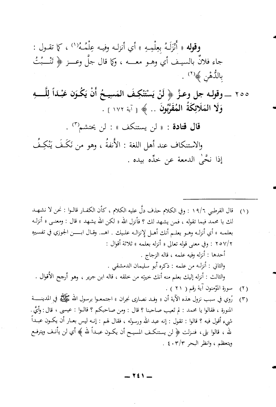 بالدهن) 255 وقوله جل وعز (لن يستنكف المسيح أن يكون عبدا لله ولا الملائكة المقربون) قال قتادة لن يستنكف لن يحتشم والاستنكاف عند أهل اللغة الانفة وهو من نكف ينكف إذا نحى الدمعة عن خده بيده