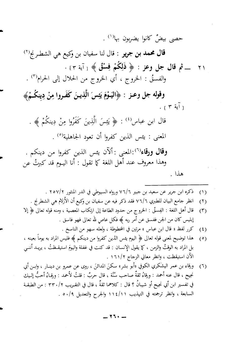 حصى بيض كانوا يضربون بها قال محمد بن جرير قال لنا سفيان بن وكيع هي الشطرنج 21 ثم قال جل وعز (ذلكم فسق) والفسق الخروج أي الخروج من الحلال الى الحرام وقوله جل وعز (اليوم يئس الذين كفروا من دينكم) قال ابن عباس (يئس الذين كفروا من دينكم) المعنى يئس الذين كفروا أن تعود الجاهلية وقال ورقاء المعنى لآن يئس الذين كفروا من دينكم