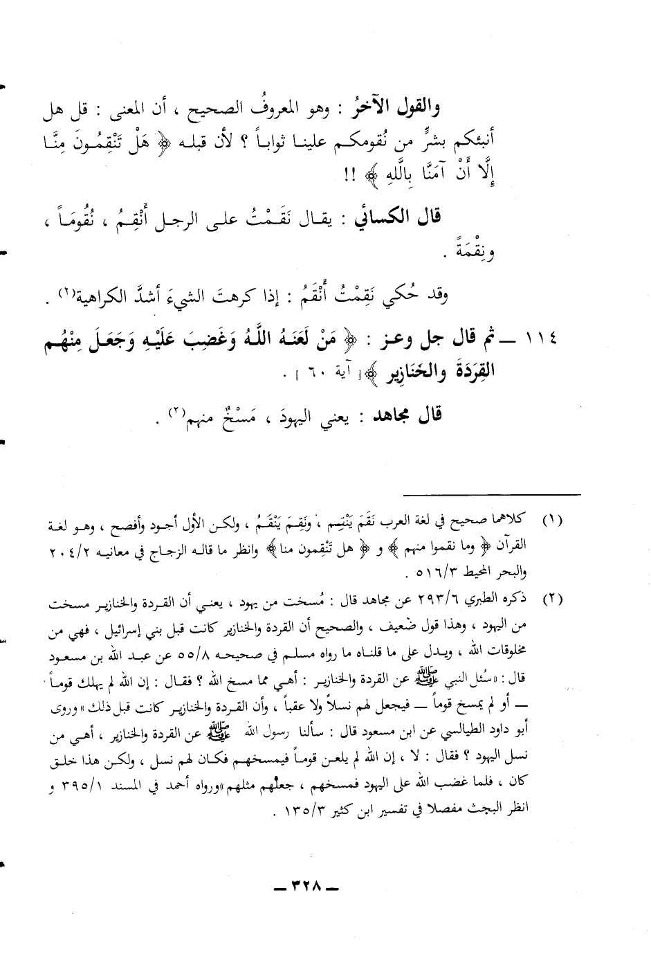 وقد حكي نقمت أنقم إذا كرهت الشئ أشد الكراهية 114 ثم قال جل وعز (من لعنه الله وغضب عليه وجعل منهم القردة والخنازير) قال مجاهد يعني اليهود مسخ منهم