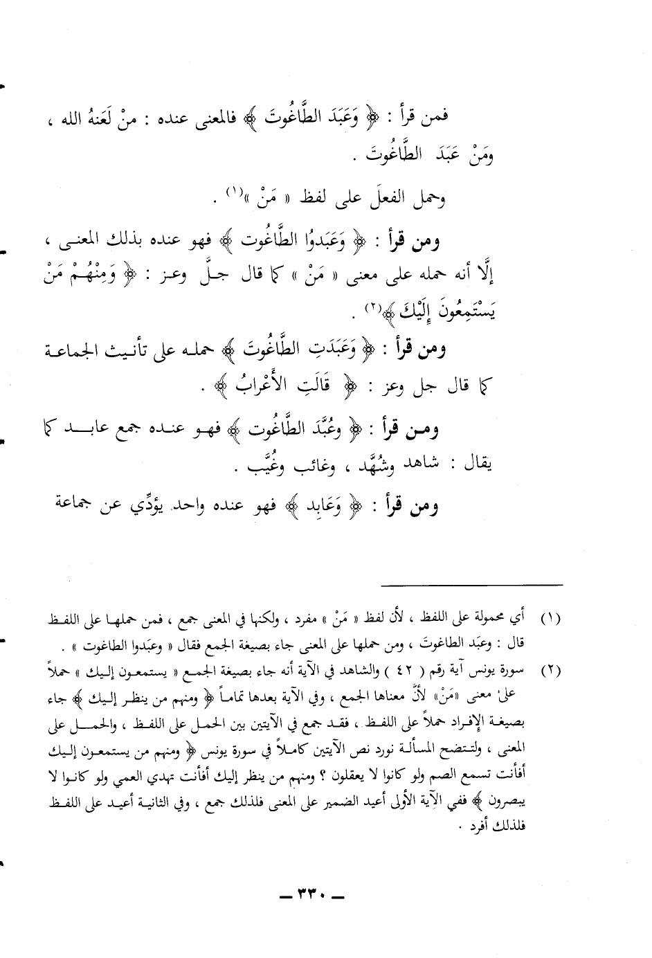 فمن قرا (وعبد الطاغوت) فالمعنى عنده من لعنه الله ومن عبد الطاغوت وحمل الفعل على لفظ من