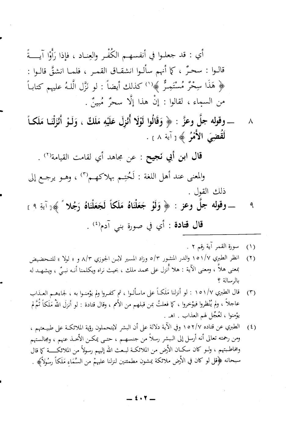 لقضي الامر) قال ابن أبي نجيح عن مجاهد أي لقامت القيامة والمعنى عند أهل اللغة لحتم بهلاكهم وهو يرجع الى ذلك القول 9 وقوله جل وعز (ولو جعلناه ملكا لجعلناه رجلا) قال قتادة أي في صورة بني آدم