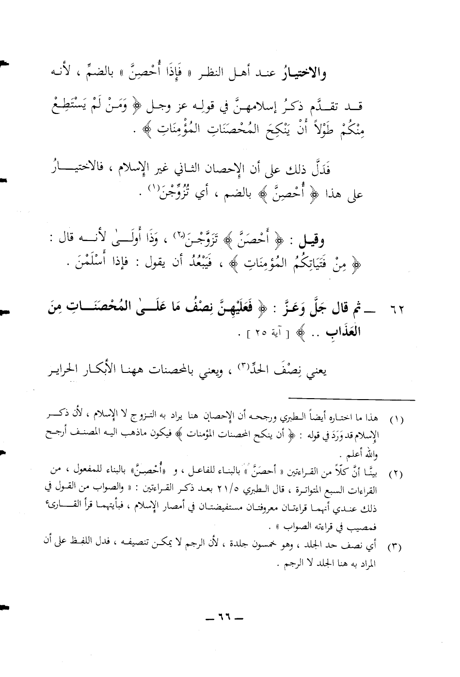 والاختيار عند أهل النظر فإذا أحصن بالضم لانه قد تقدم ذكر اسلامهن في قوله عز وجل ومن لم يستطع منكم طولا أن ينكح المحصنات المؤمنات فدل ذلك على أن الاحصان الثاني غير الاسلام فالاختيار على هذا (أحصن) بالضم أي تزوجن وقيل (أحصن) تزوجن وذا أولى لانه قال (من فتياتكم المؤمنات) فيبعد أن يقول فإذا أسلمن 62 ثم قال جل وعز (فعليهن نصف ما على المحصنات من العذاب)