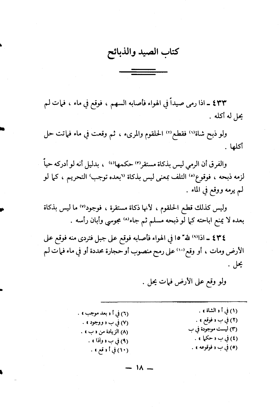 434 - إذَا طَارَ فِي الْهَوَاءِ فَأَصَابَهُ فَوَقَعَ عَلَى جَبَلٍ فَتَرَدَّى مِنْهُ فَوَقَعَ عَلَى الْأَرْضِ وَمَاتَ، أَوْ وَقَعَ عَلَى رُمْحٍ مَنْصُوبٍ أَوْ حِجَارَةٍ مُحَدَّدَةٍ أَوْ فِي مَاءٍ فَمَاتَ لَمْ يَحِلَّ.