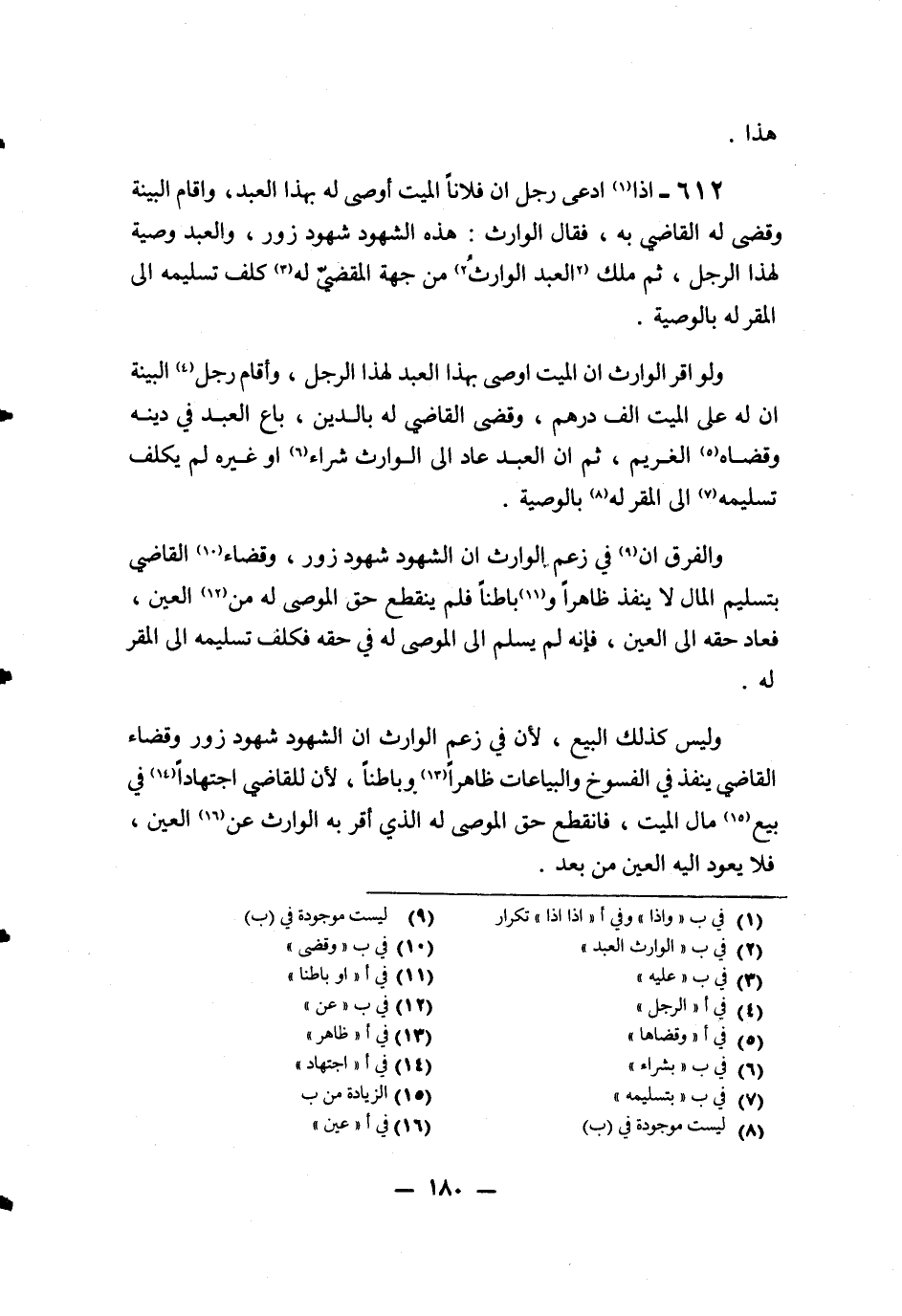 612 - إذَا ادَّعَى رَجُلٌ أَنَّ فُلَانًا الْمَيِّتَ أَوْصَى لَهُ بِهَذَا الْعَبْدِ، وَأَقَامَ الْبَيِّنَةَ وَقَضَى لَهُ الْقَاضِي بِهِ، فَقَالَ الْوَارِثُ: هَذِهِ الشُّهُودُ شُهُودُ زُورٍ، وَالْعَبْدُ وَصِيَّةٌ لِهَذَا الرَّجُلِ، ثُمَّ مَلَكَ الْعَبْدَ الْوَارِثُ مِنْ جِهَةِ الْمَقْضِيِّ لَهُ كُلِّفَ تَسْلِيمُهُ إلَى الْمُقَرِّ لَهُ بِالْوَصِيَّةِ.