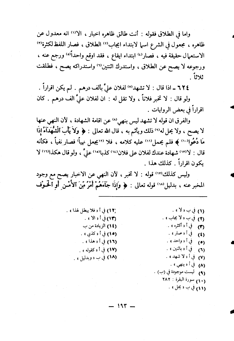قَالَ اللَّهُ تَعَالَى: {وَلا يَأْبَ الشُّهَدَاءُ إِذَا مَا دُعُوا} [البقرة: 282] فَلَمْ يُحْمَلْ عَلَيْهِ كَلَامُهُ، فَلَا يُجْعَلُ نَهْيًا فَصَارَ نَفْيًا، فَكَأَنَّهُ قَالَ: لَا شَهَادَةَ عِنْدَك لِفُلَانٍ عَلَى فُلَانٍ، كَذِبًا عَلَيَّ، وَلَوْ قَالَ هَكَذَا لَا يَكُونُ إقْرَارًا.