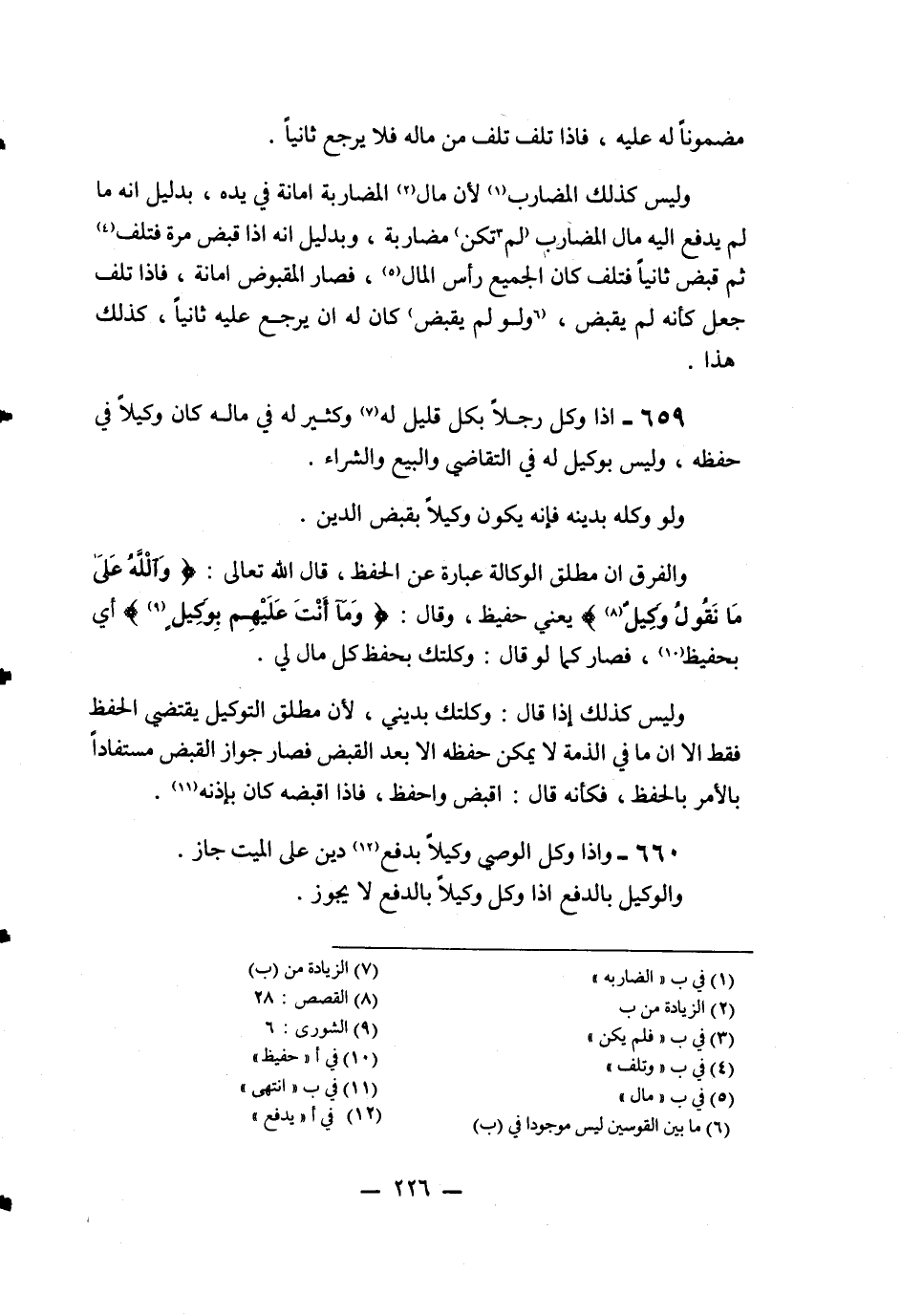 659 - إذَا وَكَّلَ رَجُلًا بِكُلِّ قَلِيلٍ لَهُ وَكَثِيرٍ لَهُ فِي مَالِهِ كَانَ وَكِيلًا فِي حِفْظِهِ، وَلَيْسَ بِوَكِيلٍ لَهُ فِي التَّقَاضِي وَالْبَيْعِ وَالشِّرَاءِ.