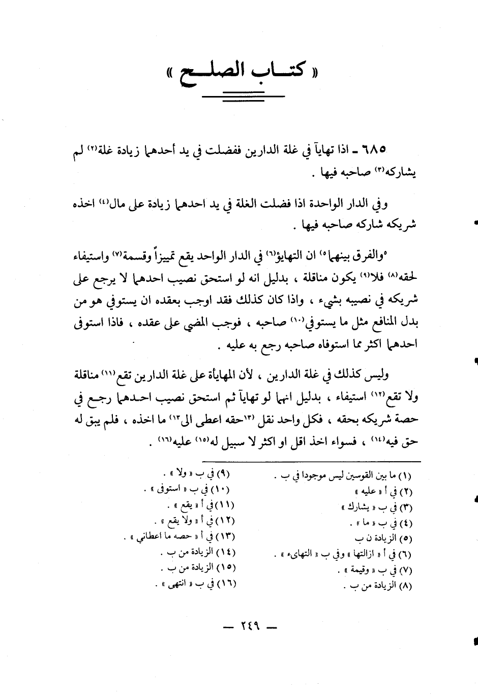 685 - إذَا تَهَايَآ فِي غَلَّةِ الدَّارَيْنِ فَفَضَلَتْ فِي يَدِ أَحَدِهِمَا زِيَادَةُ غَلَّةٍ لَمْ يُشَارِكْهُ صَاحِبُهُ فِيهَا.
