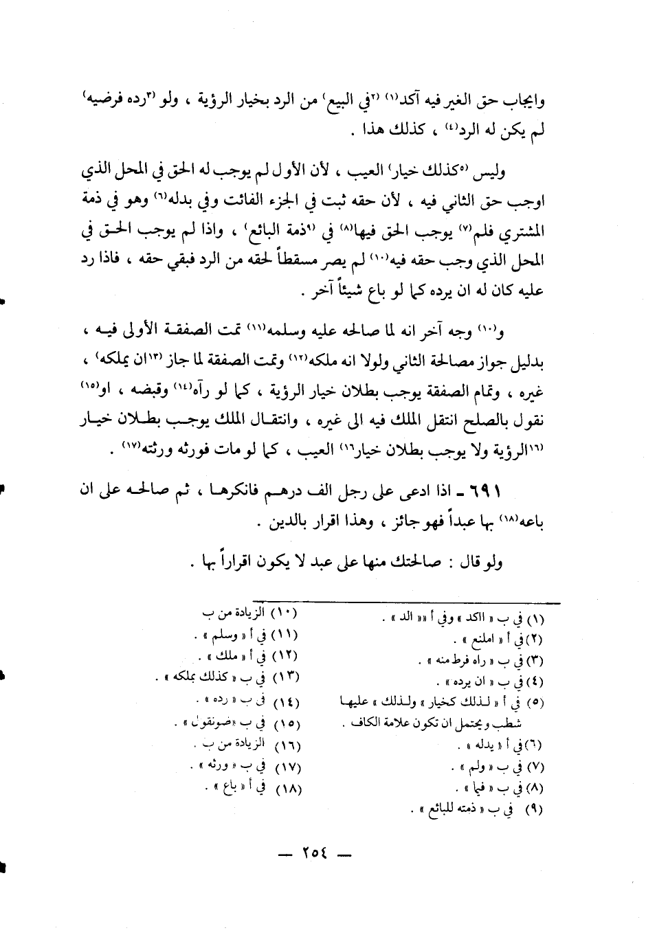 وَلَيْسَ كَذَلِكَ خِيَارُ الْعَيْبِ؛ لِأَنَّ الْأَوَّلَ لَمْ يُوجَبْ لَهُ الْحَقُّ فِي الْمَحِلِّ الَّذِي أُوجِبَ حَقُّ الثَّانِي فِيهِ؛ لِأَنَّ حَقَّهُ ثَبَتَ فِي الْجُزْءِ الْفَائِتِ وَفِي بَدَلِهِ وَهُوَ فِي ذِمَّةِ الْمُشْتَرِي فَلَمْ يُوجَبْ الْحَقُّ فِيهَا فِي ذِمَّةِ الْبَائِعِ، وَإِذَا لَمْ يُوجَبْ الْحَقُّ فِي الْمَحِلِّ الَّذِي وَجَبَ حَقُّهُ فِيهِ لَمْ يَصِرْ مُسْقِطًا لِحَقِّهِ مِنْ الرَّدِّ فَبَقِيَ حَقُّهُ، فَإِذَا رَدَّ عَلَيْهِ كَانَ لَهُ أَنْ يَرُدَّهُ كَمَا لَوْ بَاعَ شَيْئًا آخَرَ.