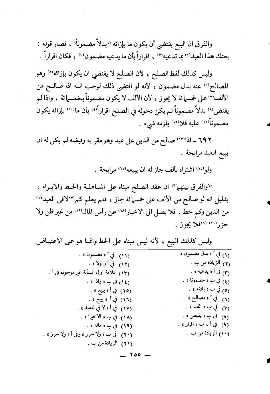 وَالْفَرْقُ بَيْنَهُمَا أَنَّ عَقْدَ الصُّلْحِ مَبْنَاهُ عَلَى الْمُسَاهَلَةِ وَالْحَطِّ وَالْإِبْرَاءِ، بِدَلِيلِ أَنَّهُ لَوْ صَالَحَ مِنْ الْأَلْفِ عَلَى خَمْسِمِائَةٍ جَازَ، فَلَمْ يَعْلَمْ كَمْ لَاقَى الْعَبْدُ مِنْ الدَّيْنِ وَكَمْ حَطَّ، فَلَا يَصِلُ إلَى الْإِخْبَارِ عَنْ رَأْسِ الْمَالِ مِنْ غَيْرِ ظَنٍّ وَلَا حِرْزٍ فَلَا يَجُوزُ.