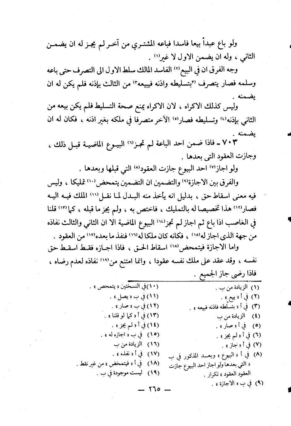 703 - فَإِذَا ضَمِنَ أَحَدُ الْبَاعَةِ لَمْ تَجُزْ الْبُيُوعُ الْمَاضِيَةُ قَبْلَ ذَلِكَ، وَجَازَتْ الْعُقُودُ الَّتِي بَعْدَهَا وَلَوْ أَجَازَ أَحَدَ الْبُيُوعِ جَازَتْ الْعُقُودُ الَّتِي قَبْلَهَا وَبَعْدَهَا.