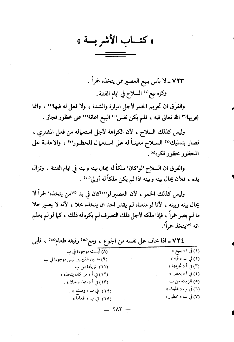 723 - لَا بَأْسَ بِبَيْعِ الْعَصِيرِ مِمَّنْ يَتَّخِذُهُ خَمْرًا. وَكُرِهَ بَيْعُ السِّلَاحِ فِي أَيَّامِ الْفِتْنَةِ.