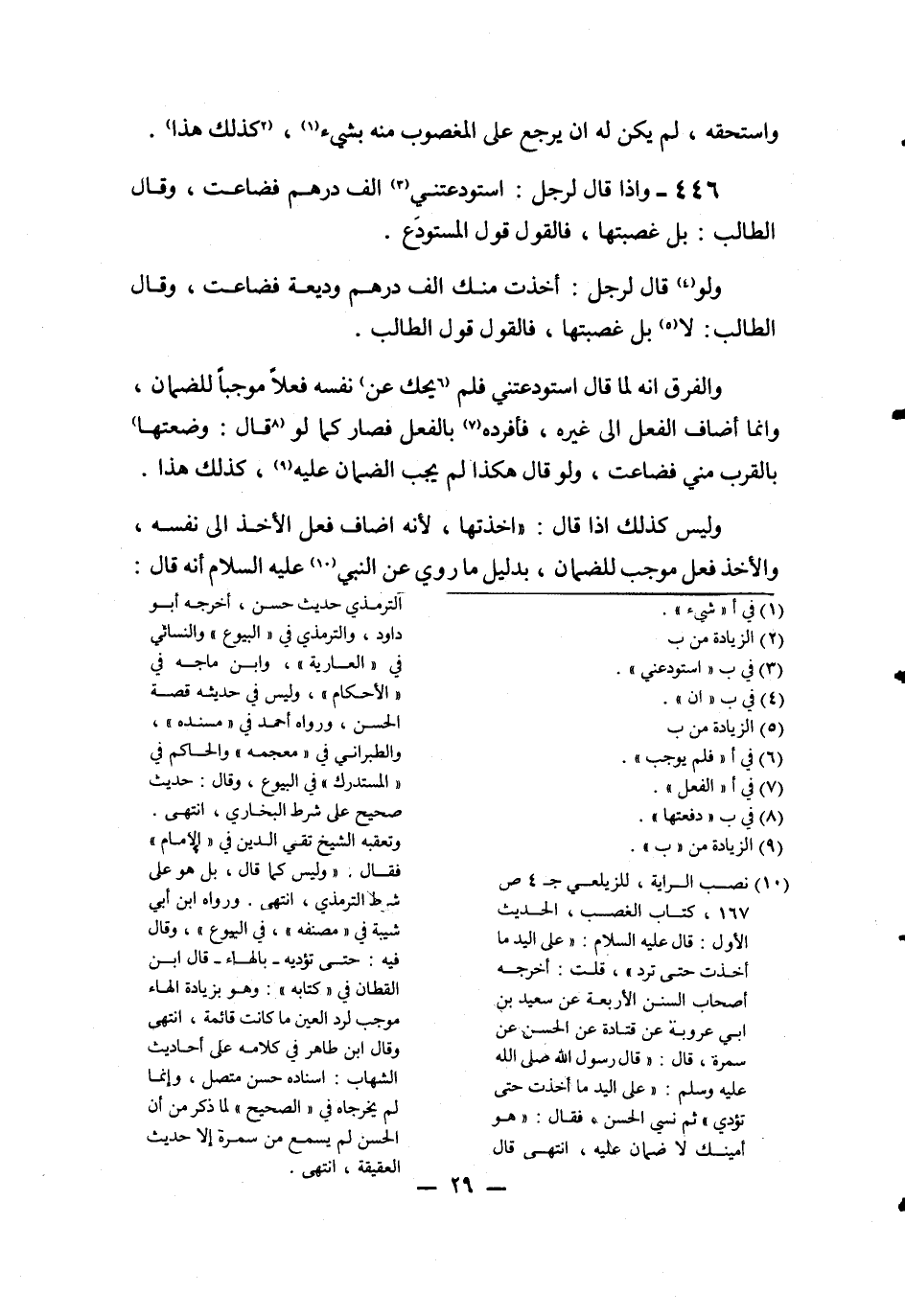 446 - وَإِذَا قَالَ لِرَجُلٍ: اسْتَوْدَعْتَنِي أَلْفَ دِرْهَمٍ فَضَاعَتْ، وَقَالَ الطَّالِبُ: بَلْ غَصَبْتَهَا، فَالْقَوْلُ قَوْلُ الْمُسْتَوْدَعِ.