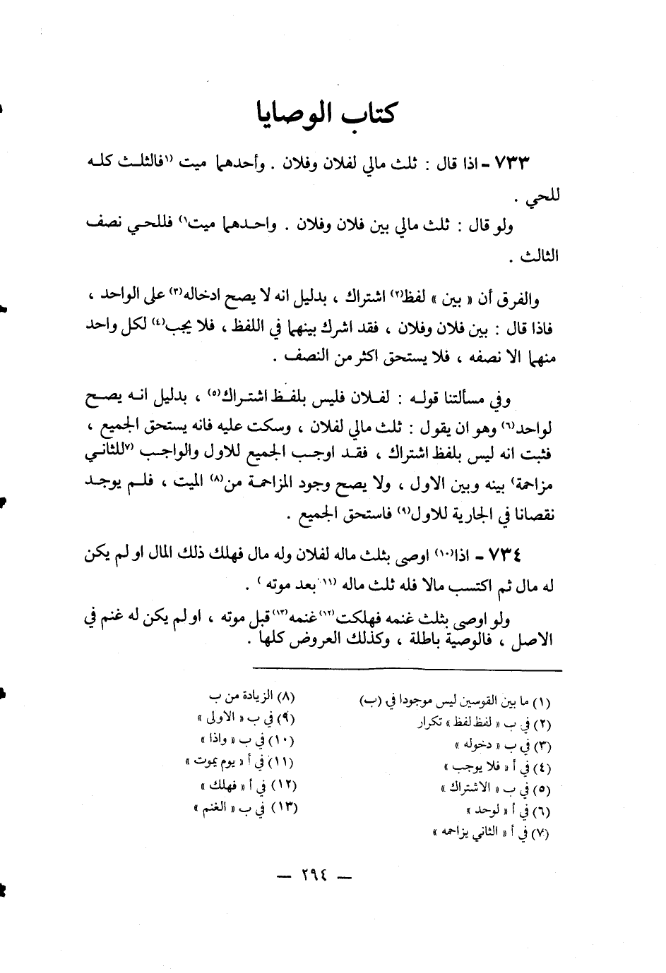 733 - إذَا قَالَ: ثُلُثُ مَالِي لِفُلَانٍ وَفُلَانٍ. وَأَحَدُهُمَا مَيِّتٌ فَالثُّلُثُ كُلُّهُ لِلْحَيِّ.