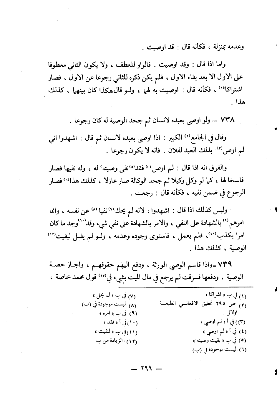 738 - وَلَوْ أَوْصَى بِعَبْدِهِ لِإِنْسَانٍ ثُمَّ جَحَدَ الْوَصِيَّةَ لَهُ كَانَ رُجُوعًا.