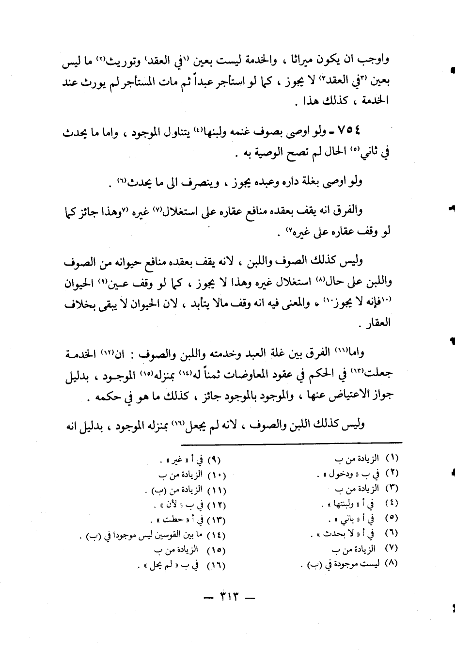 754 - وَلَوْ أَوْصَى بِصُوفِ غَنَمِهِ وَلَبَنِهَا يَتَنَاوَلُ الْمَوْجُودَ، وَأَمَّا مَا يَحْدُثُ فِي ثَانِي الْحَالِ لَمْ تَصِحَّ الْوَصِيَّةُ بِهِ.
