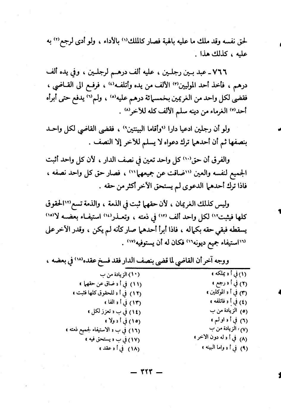 وَلَيْسَ كَذَلِكَ الْغَرِيمَانِ، لِأَنَّ حَقَّهُمَا ثَبَتَ فِي الذِّمَّةِ، وَالذِّمَّةُ تَسَعُ الْحُقُوقَ كُلَّهَا فَيَثْبُتُ لِكُلِّ وَاحِدٍ أَلْفٌ فِي ذِمَّتِهِ، وَتَعَذُّرُ اسْتِيفَاءِ بَعْضِهِ لَا يُسْقِطُهُ فَبَقِيَ حَقُّهُ بِكَمَالِهِ، فَإِذَا أَبْرَأَ أَحَدَهُمَا صَارَ كَأَنَّهُ لَمْ يَكُنْ، وَقَدَرَ الْآخَرُ عَلَى اسْتِيفَاءِ جَمِيعِ دُيُونِهِ فَكَانَ لَهُ أَنْ يَسْتَوْفِيَهُ.