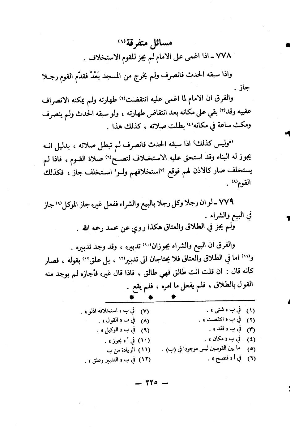 778 - إذَا أُغْمِيَ عَلَى الْإِمَامِ لَمْ يَجُزْ لِلْقَوْمِ الِاسْتِخْلَافُ.