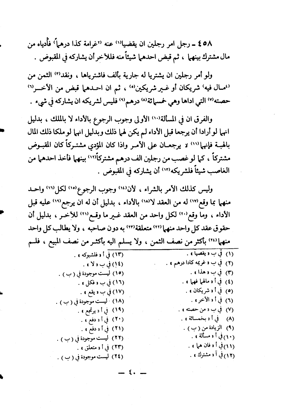 458 - رَجُلٌ أَمَرَ رَجُلَيْنِ أَنْ يَقْضِيَا عَنْهُ غَرَامَةَ كَذَا دِرْهَمًا فَأَدَّيَاهُ مِنْ مَالٍ مُشْتَرَكٍ بَيْنَهُمَا، ثُمَّ قَبَضَ أَحَدُهُمَا شَيْئًا مِنْهُ فَلِلْآخَرِ أَنْ يُشَارِكَهُ فِي الْمَقْبُوضِ.